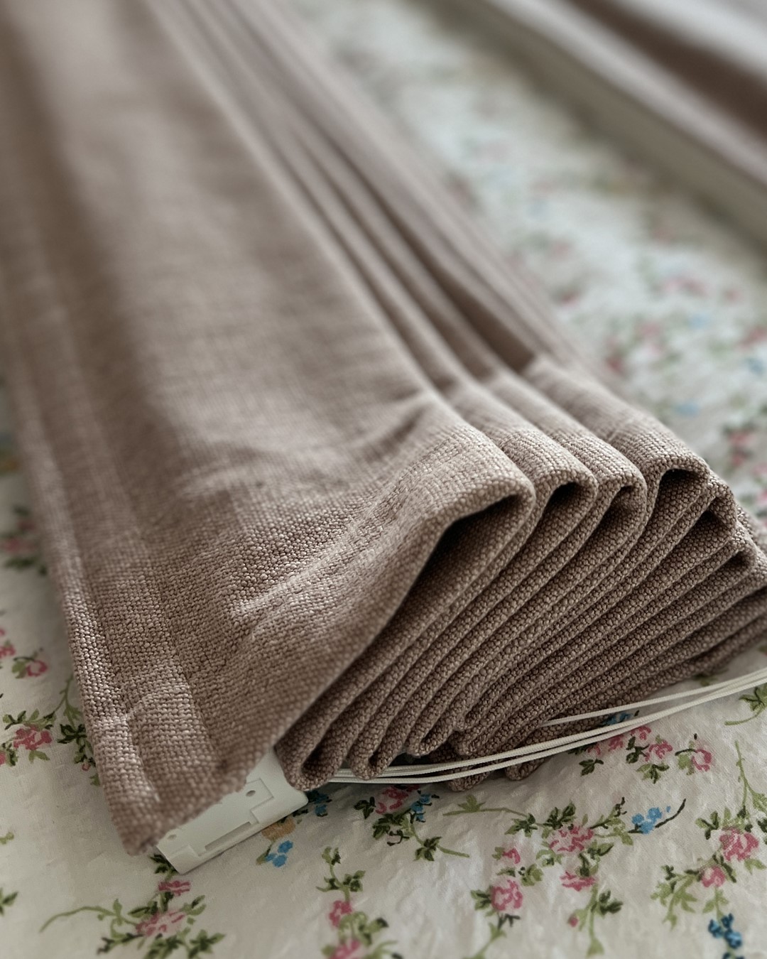 De eksklusive wavefold-gardinene går ton-i-ton med veggfargen og skaper en rolig, gjennomgående stemning i hjemmet. Bli med inn!