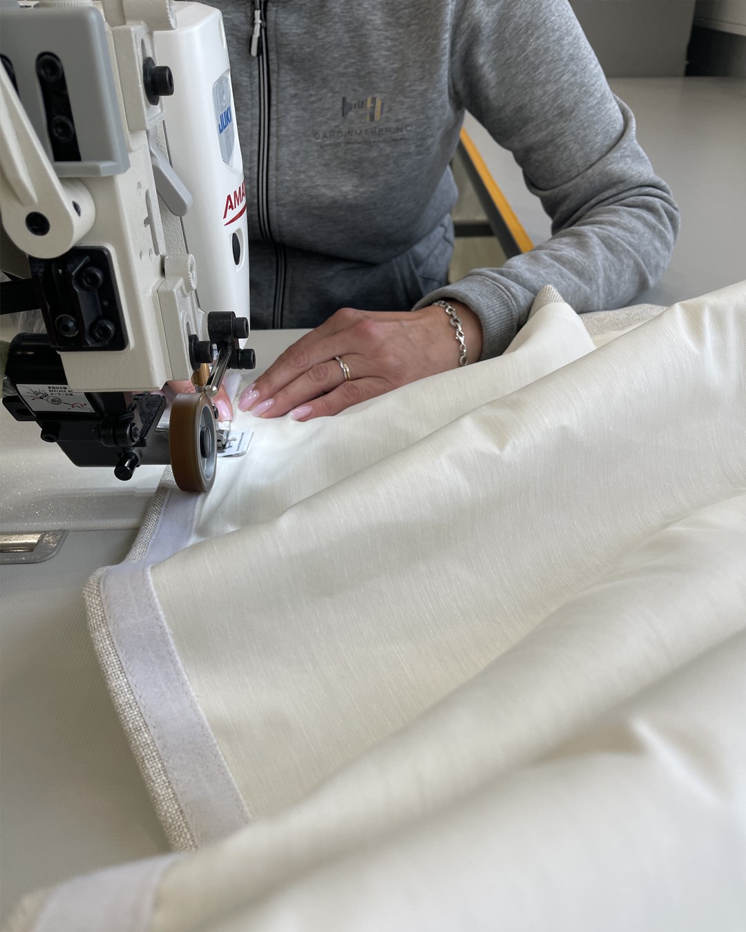 Fritthengende, topphengt Duo plissègardin med snortrekk, som måltilpasses i bredder inntil 230 cm. Den dobbeltsidige Duo-tekstilen har en struktur med luftlommer der luften sirkulerer og skaper et isolasjonslag som sikrer.