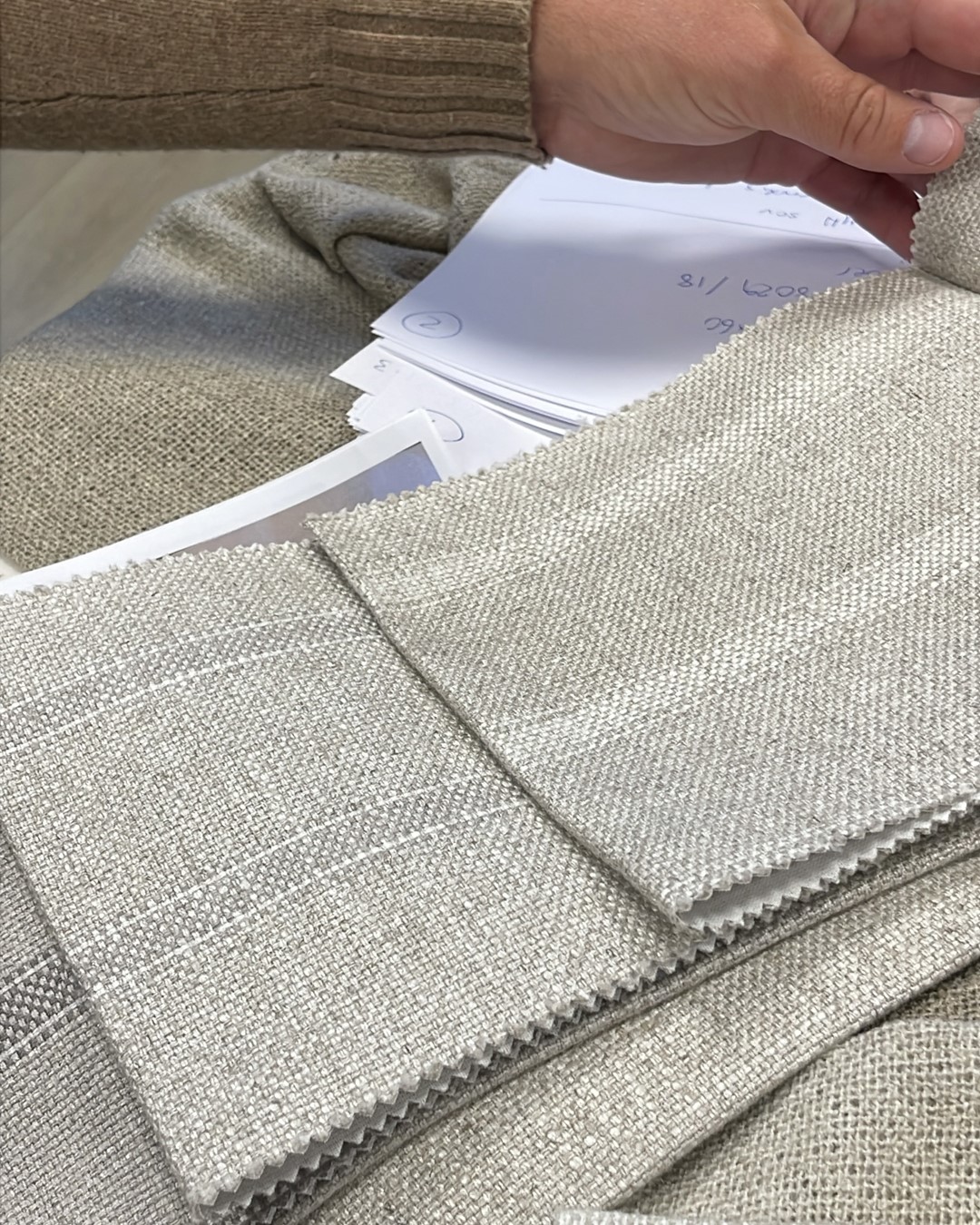 En tidløs og moderne lin- tekstil med smale vertikale striper, der viskosegarn er vevd med matte linfibre for en naturlig, elegant look. Godt egnet både til gardinhøyder, liftgardiner og puter.