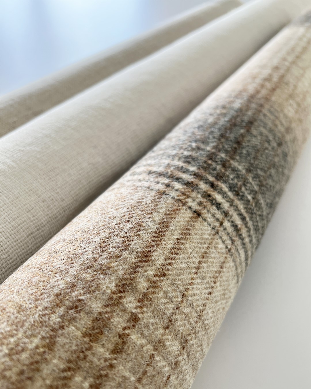 Gardiner i 100 % ull gir annekset på Almoseteren varme og karakter