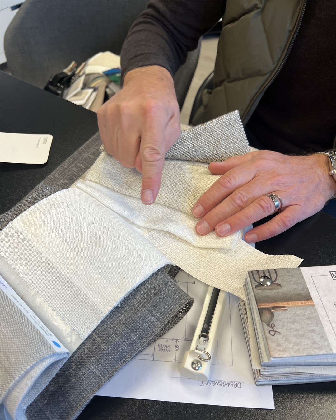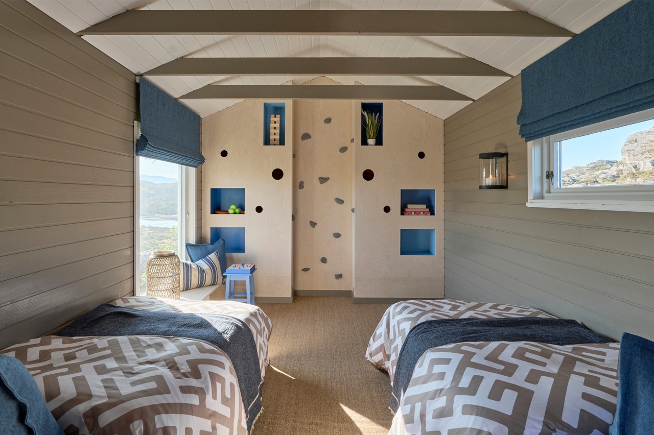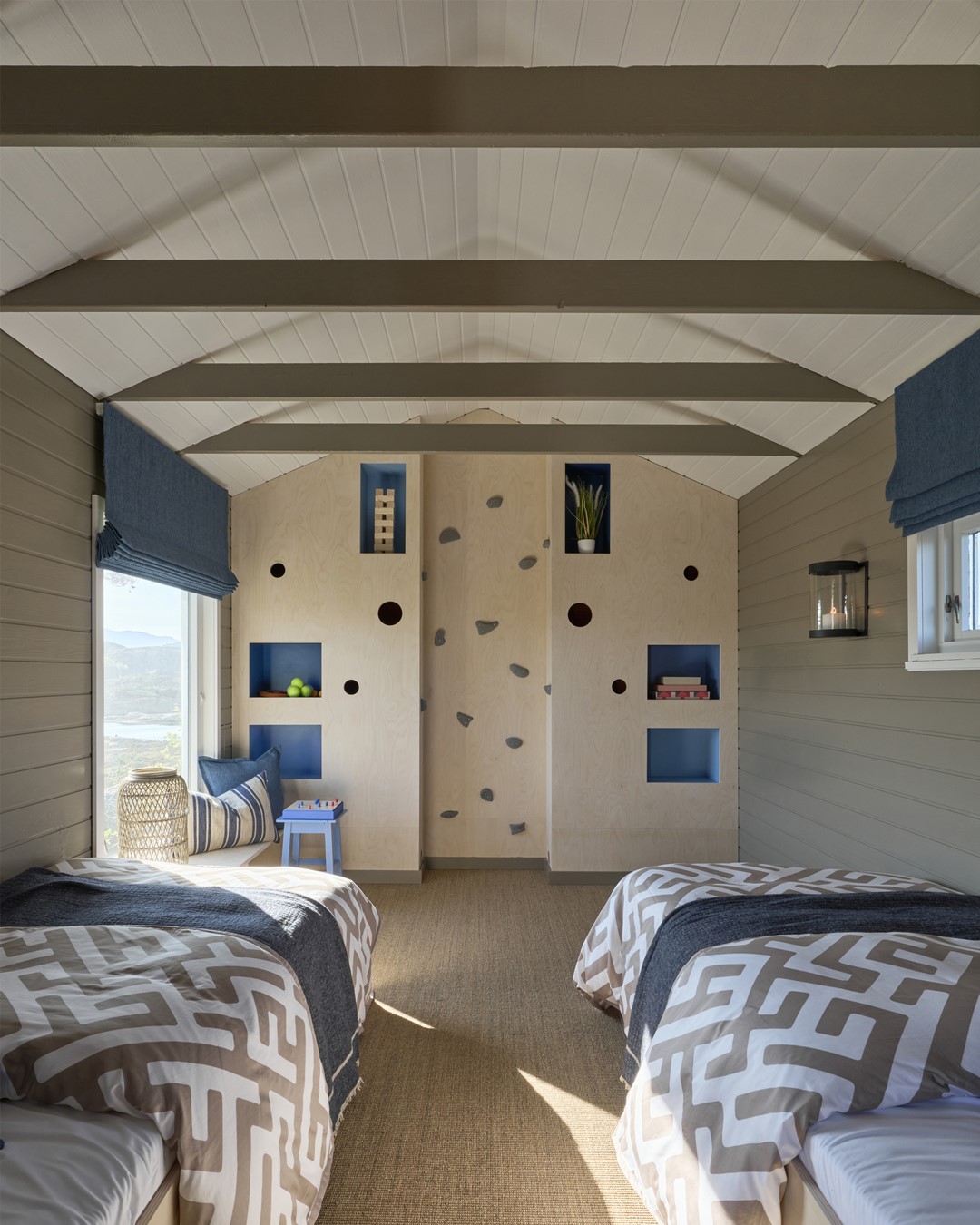 Halvor Bakke & Co oppgraderer hytta i Portør med gardiner, liftgardiner og puter i en mønstermix av nye tekstiler fra Ian Mankin.